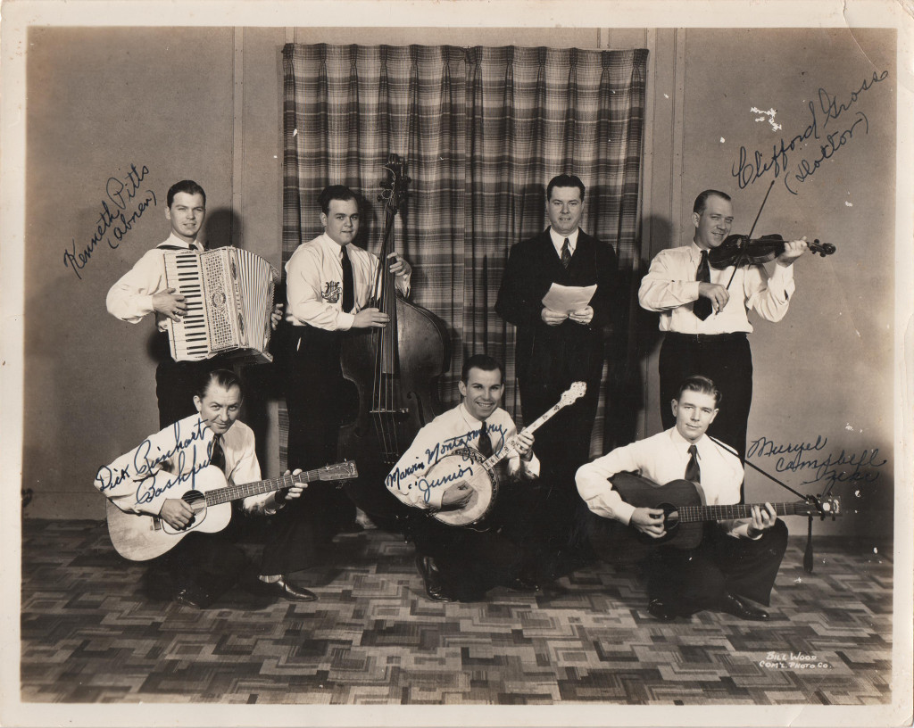 Light Crust Doughboys – Photograph Published December 7, 2024 at 1024 × 816 in Gallery Light Crust Doughboys Photograph of the Light Crust Doughboys, autographed in black ink by Kenneth Pitts, Dick Reinhart, Marvin Montgomery, Muryel Campbell, and Clifford Gross; circa late 1930s.