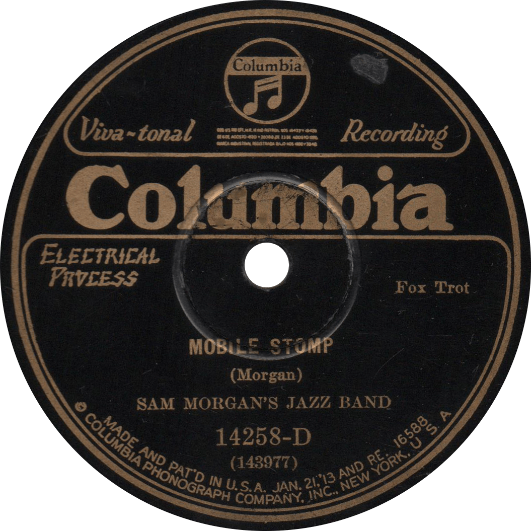 Columbia 14258-D—in the “race” series—was recorded on April 14, 1927 at Werlein’s Music Store on Canal Street in New Orleans. The band consists of Sam Morgan and Isaiah “Ike” Morgan on cornets, Big Jim Robinson on trombone, Earl Fouche on alto sax, Andrew Morgan on clarinet and tenor sax, Tink Baptiste on piano, Johnny Davis on banjo, Sidney Brown on string bass, and Nolan Williams on drums.