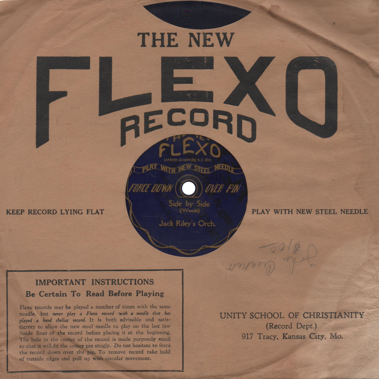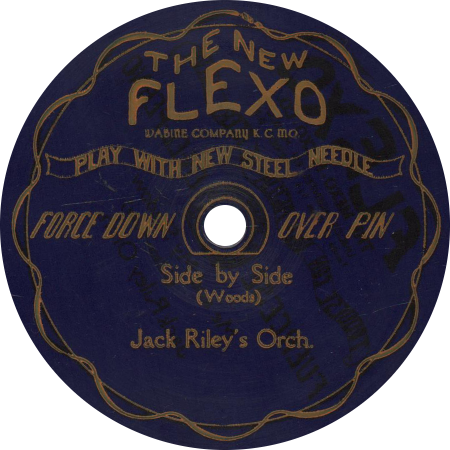 Flexo RecordsFlexo records were invented around 1925 by Jesse J. Warner of Kansas City, Missouri. They were first produced by the Warner Record Company from 1925 to 1927, then the Wabine Company from 1927 to 1929, and finally by Pacific Coast Records after having relocated to San Francisco, California. Flexo discs are pressed in a flexible translucent plastic material, in an arrary of different colors, rather than traditional shellac.