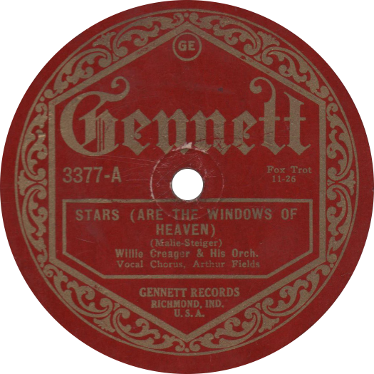Gennett was badly affected by the Great Depression in 1930 and their production dwindled during this time, but the company continued to exist for quite a few more years. During World War II, Gennett sold shellac to other record comapnies when the material was rationed. The Gennett label was briefly revivied by Joe Davis in the early 1940s.