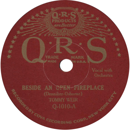 QRS RecordsQRS (either an acronym or a "backronym" for "Quality Reigns Supreme") was a manufacturer of piano rolls, founded in 1900. There were several different record labels associated with the piano roll company, none of which seem to have been particularly commercially successful, as all are quite scarce today. The first line of QRS Records, in 1919, apparently drew from Emerson, and matched their nine inch format of the time, I have never seen one of this type personally, and I cannot confirm their existence. The second label, in the early to mid-1920s, drew straight from Starr Piano masters, issuing discs identical to Gennett issues in every way but label (much like the Connorized label of the same period). Examples of these two varieties are not presently available for display here.